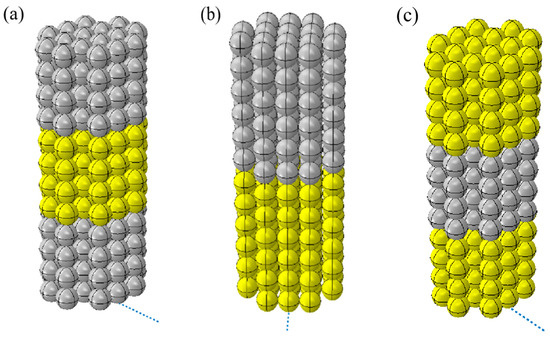 Powder models at different Cu–Al volume ratios: (a) 1:2, (b) 1:1, and (c) 2:1.