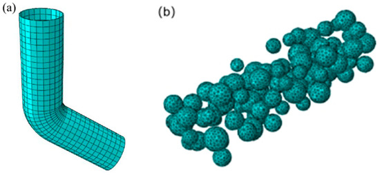 The finite element model after the meshing process: (a) negative mold and (b) mixed powder model.