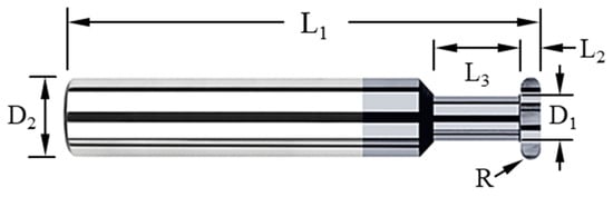 As the ASHM machine uses a three-axis machining system, it is difficult to machine the overhanging surface with a normal flat milling cutter. Therefore, in this experiment, a T-shaped fillet milling cutter was used as shown in Figure 3, which enables to manufacture the vertical side as well as the overhang surfaces. The tool fillet increases the stiffness of the cutting edge and reduces the possibility of tool chipping. The geometric dimensions of the T-shaped fillet milling cutter tool are shown in Table 2.