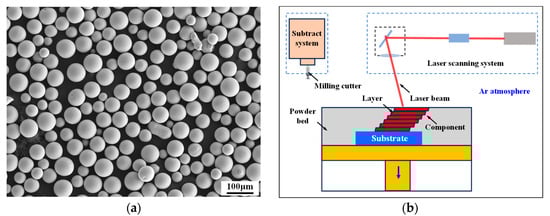(a) The morphology of gas-atomized Ti6Al4V powder; (b) Sodick OPM250L schematic diagram of the ASHM system.