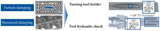 - Vogel, F.A.; Berger, S.; Özkaya, E.; Biermann, D. Vibration Suppression in Turning TiAl6V4 Using Additively Manufactured Tool Holders with Specially Structured, Particle Filled Hollow Elements. Procedia Manuf. 2019, 40, 32–37. [Google Scholar] [CrossRef]