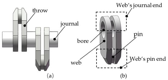 The crank throw, which includes two webs and a crank pin (see Figure 2), is particularly challenging to produce due to its complex shape, substantial weight, and stringent performance requirements arising from demanding operating conditions [].