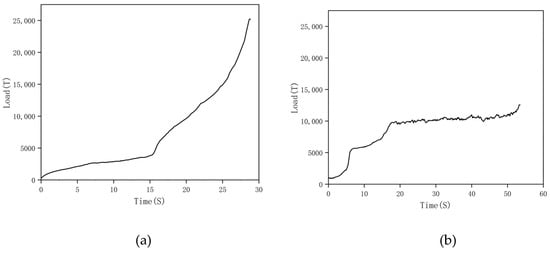 Load-time curves for the grooving–upsetting/backward extrusion. (a) Grooving–upsetting and (b) Backward extrusion.