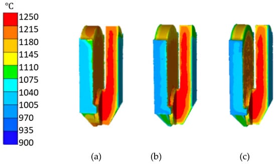 Final forging temperatures. (a) OSE, (b) U/BE, and (c) G–U/BE.