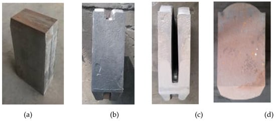 The procedure is as follows: billet cutting → heating → high-pressure water de-scaling → G–U/BE. Figure 20 shows the billet at different stages: (a) initial billet, (b) after grooving–upsetting, (c) and (d) as the final forging. It is clear that the near-net forged crank throw using grooving–upsetting/backward extrusion meets the required shape specifications.