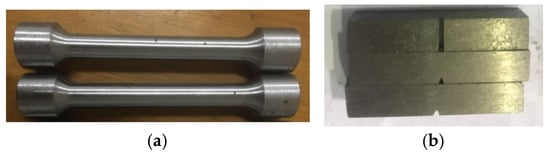 Test specimens: (a) tensile test, and (b) impact test.