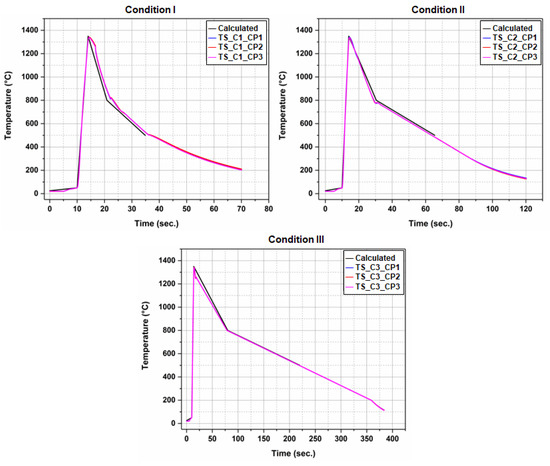 Thermal curves used for the three different conditions.