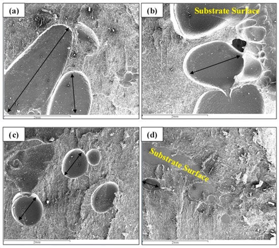 The fracture surface of 0.3 mm bond-line thickness for different surface roughness values: (a) 0.6 μm, (b) 1 μm, (c) 1.2 μm and (d) 1.5 μm. Reprinted with permission from Ref. [55]. Copyright 2024 Elsevier.