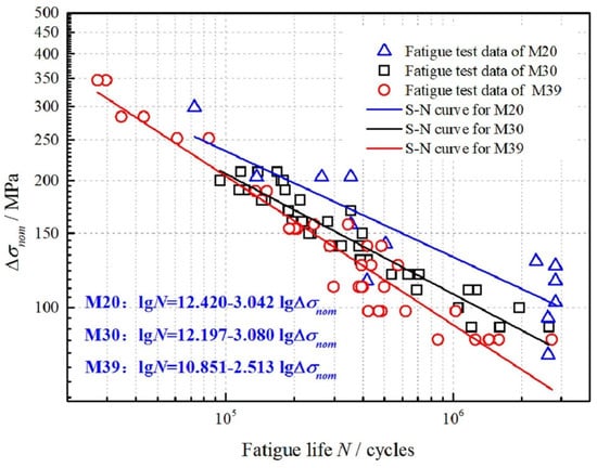 Fatigue life BSJs under different bolts: M20, 30 and 39. Reprinted with permission from Ref. [83]. Copyright 2024 Elsevier.