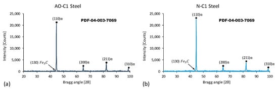 XRD patterns of (a) AO-C1 steel and (b) N-C1 steel.