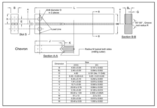 The double cantilever beam (DCB) specimen was designed with modifications to the standard DCB specimen outlined in the NACE TM0177 [70] method D. These modifications included adjustments to the specimen’s thickness and length. A reduction in thickness was necessary due to the limited thickness of the AO-C1 pipe, while the specimen length was shortened to fit within the testing vessel compatible with the tensile tester. Figure 5 illustrates the geometry of the DCB specimens used in this research, with the dimensions detailed in the accompanying table.