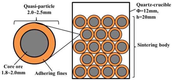 Sinters are a primary raw material used in blast furnace iron-making in Asia. The strength of the sinter not only affects the operations of the blast furnace but also influences the energy consumption and CO2 emissions during the iron-making process [1]. During the iron ore sintering process, the adhering fines in the sinter mixture are melted at temperatures above 1200 °C, and the un-melted large particles of core ores are bonded by the original melts. After this, they are cooled to form sinter cakes. The quantity of the bonding phase impacts the bonding range among the un-melted particles, while the quality of the bonding phase is determined by its strength [2,3]. Therefore, the quantity and quality of the bonding phase play essential roles in the strength of the sinter.
