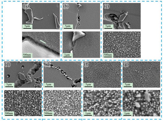 Microstructures of the Ni30 alloy after ultra-long-term holding at 750 °C: (a) 40 h, (b) 200 h, (c) 1000 h, (d) 1500 h, (e) 2000 h, (f) 3000 h, (g) 4000 h.