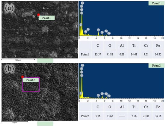 The Ni30 alloy contains Nb elements, which preferentially react with O. Research has indicated that Nb reduces the diffusion rates of other elements within the oxide layer during oxidation, while promoting the formation of the Cr2O3 oxide film. The continuous accumulation of Nb elements beneath the Cr2O3 layer can enhance the adhesion between the oxide film and the substrate, thereby improving the alloy’s oxidation resistance. However, no distinct enriched Nb layer was observed in the oxide layer. As shown in Figure 17 and the EDS results in Table 4, the quantitatively measured mass percentage of Nb oxides is only 0.2%. This situation is preliminarily attributed to the limitations of the diffusion mechanism.