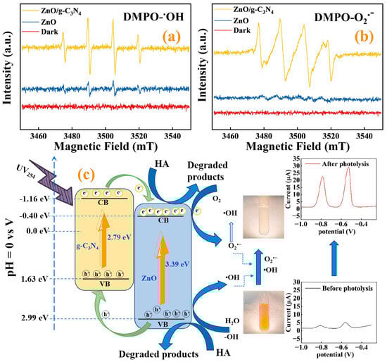 EPR spectra of ZnO and the ZnO/g-C3N4 under dark and under UV254: (a) DMPO-OH; (b) DMPO-O2; and (c) schematic diagram of the SWASV signal restoration mechanism. (Reprinted with permission from Ref. [65]. Copyright 2024, Environment Pollution).