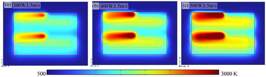| Heat source power P (W) | 300, 400, 500 |