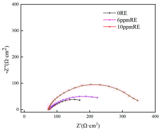 Effect of rare earth elements on the Nyquist diagram of experimental steels.