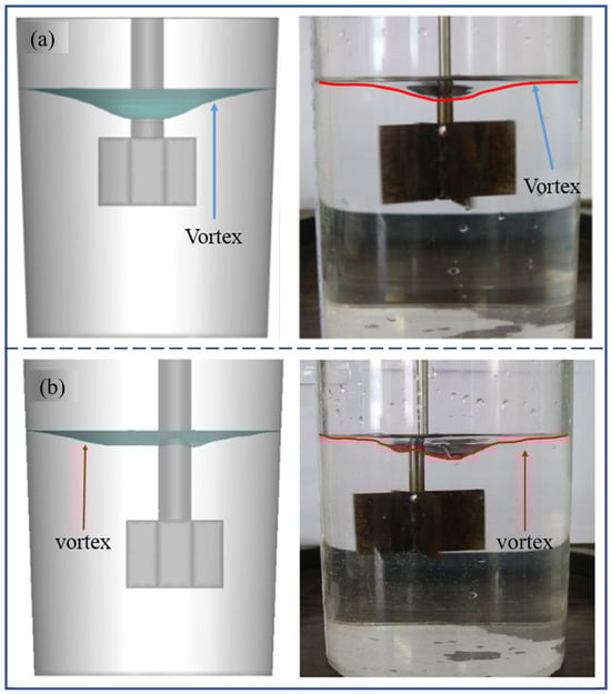 - Jiao, Y.; Zhang, Z.; Gao, F.; Han, J.J.; Wang, J.T. Effects of Particle Suspension on Surface Vortex in Unbaffled Stirred Tanks through DEM-VOF. Ind. Eng. Chem. Res. 2024, 63, 4662–4677. [Google Scholar] [CrossRef]
