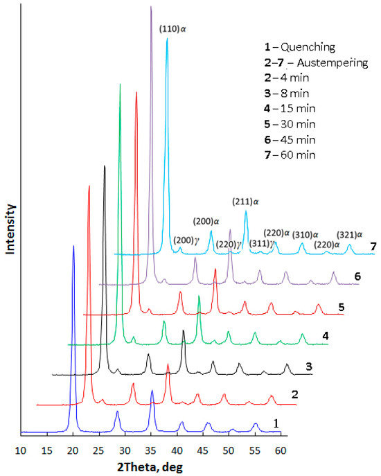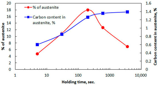 - Bhuyan, D.; Sastry, G.; Patra, S.; Pradhan, S.; Manna, R. Effect of austempering time on bainite plate thickness and variant selection in a high carbon low alloy steel. Mater. Charact. 2023, 200, 112923. [Google Scholar] [CrossRef]