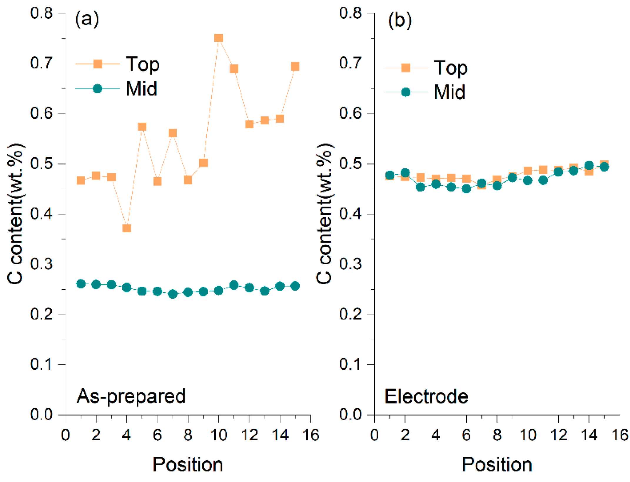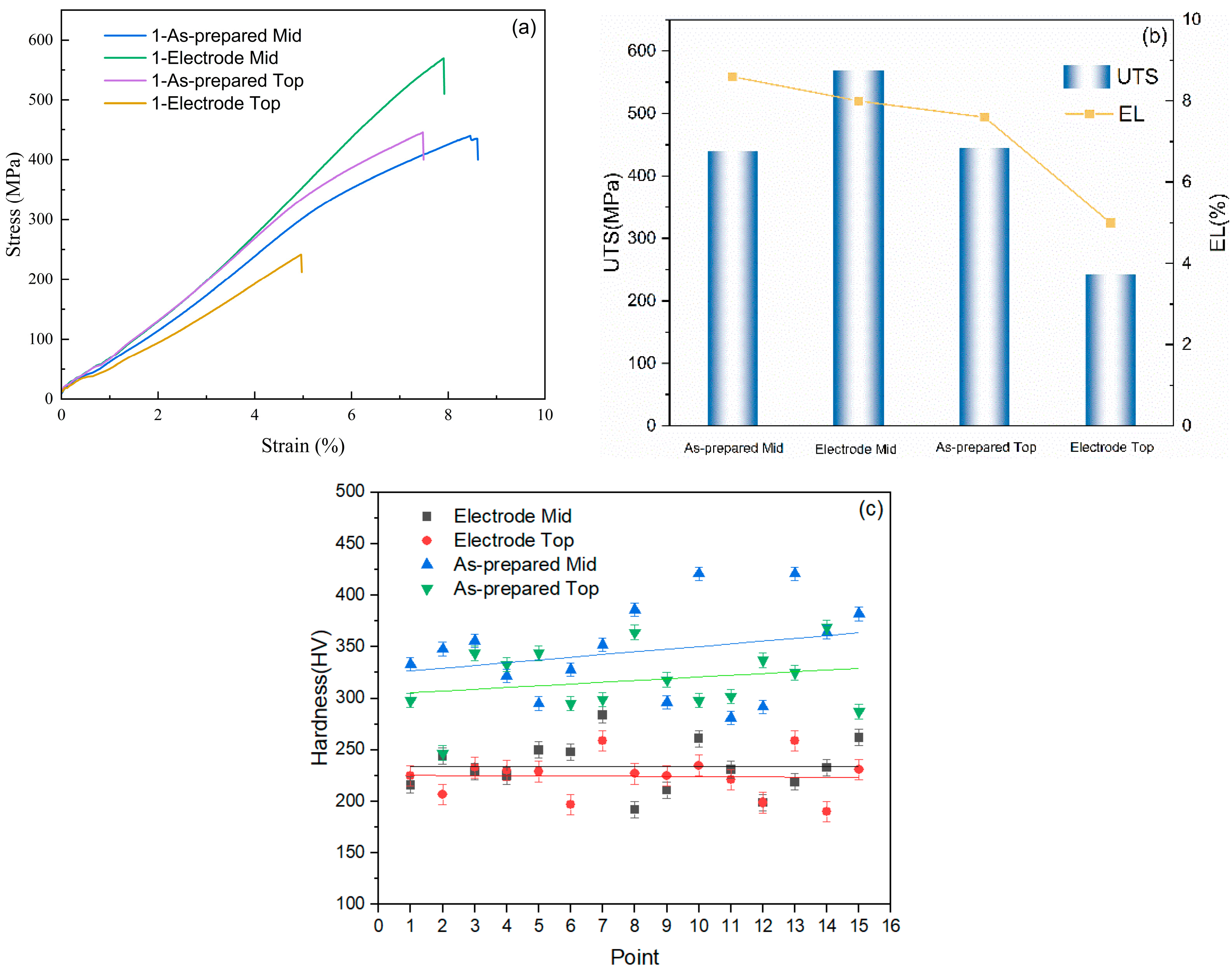 5.1. Influence of Electrodes on Microstructure