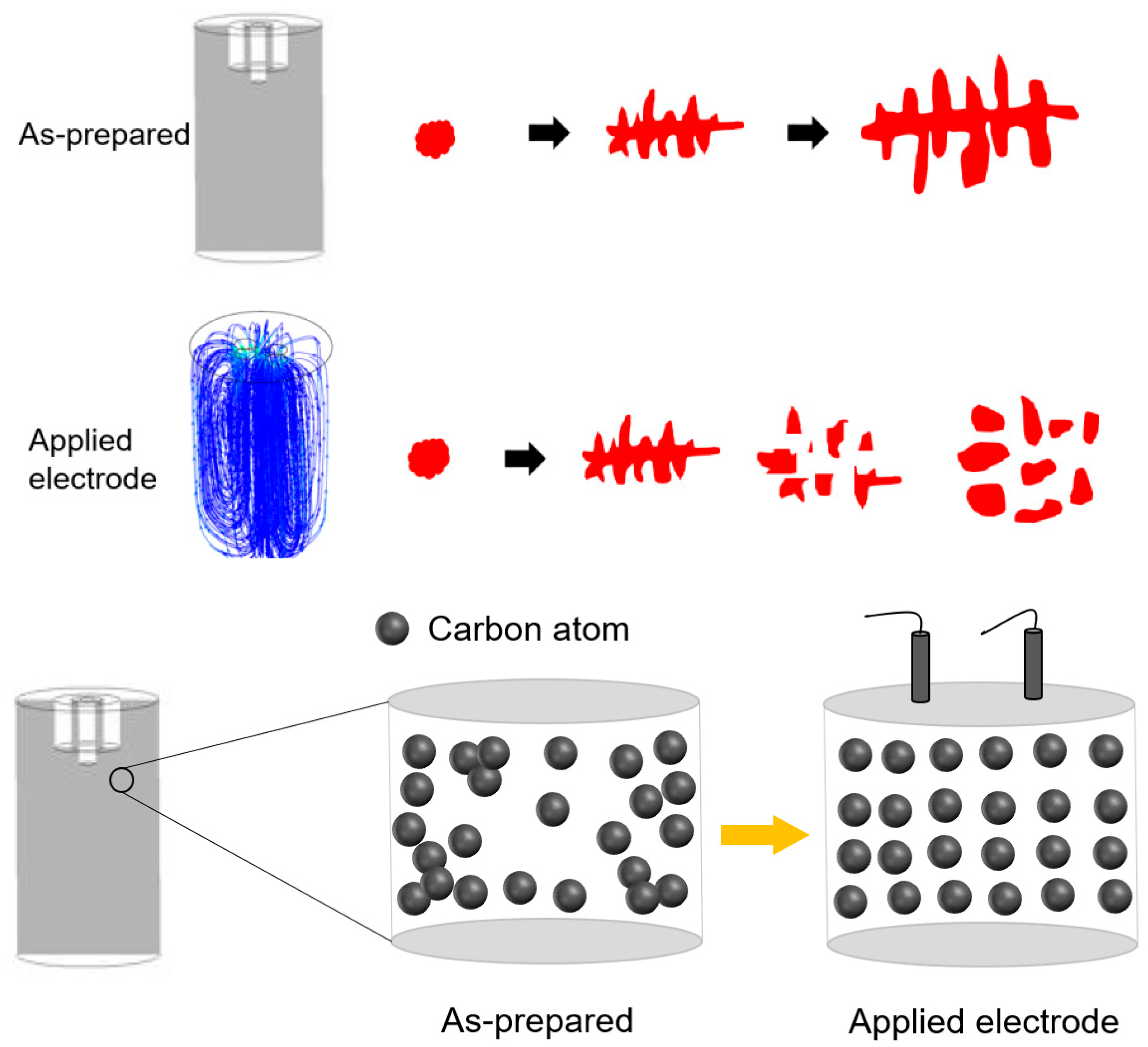 - The influence of the Joule heating effect on electrode conductivity is neglected, and the heat transfer process is not considered.