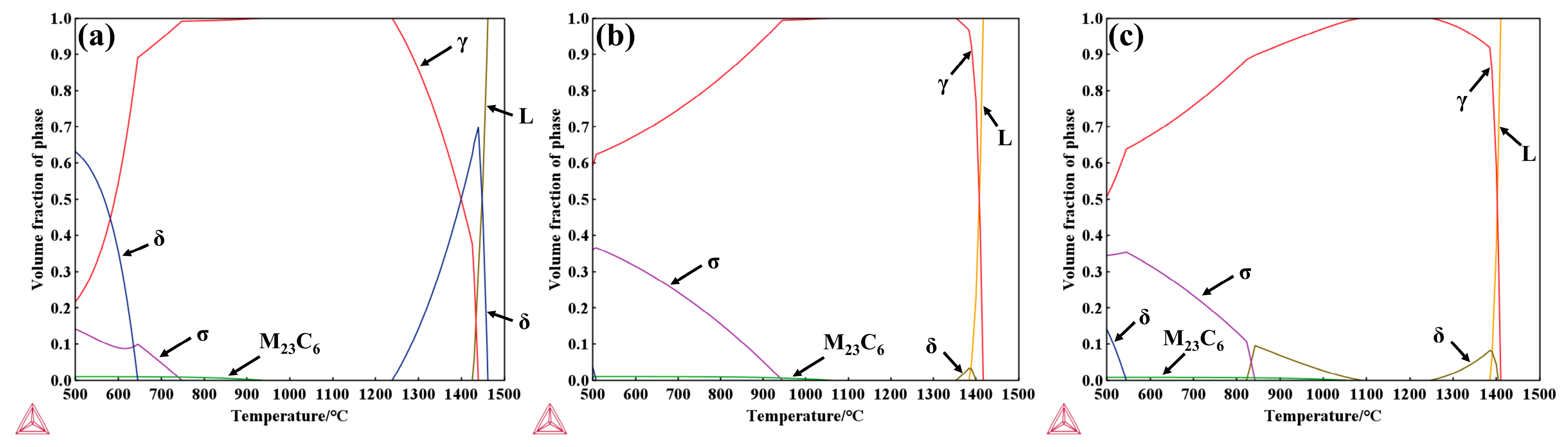 Liquids | Solidus | γ | δ | σ | M23C6 | |