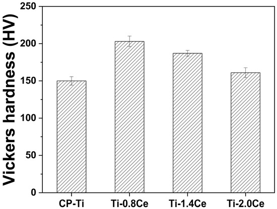 | Ti-2.0Ce | 6.53 | 0.22 | 0.57 ± 0.43 | 2.42 |