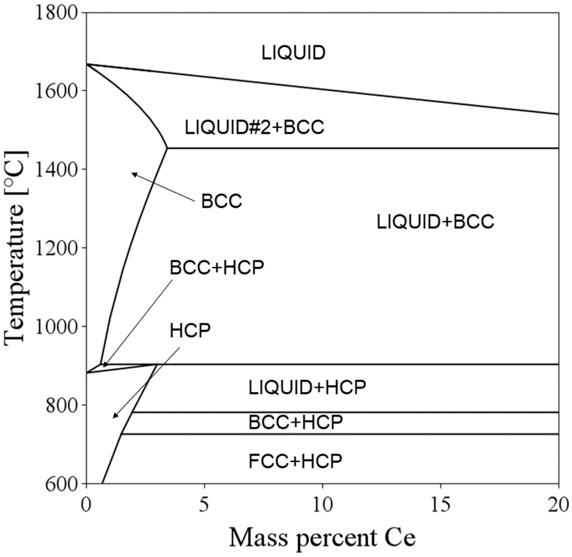 Ti-1.4Ce | Bal. | 0.02 | 0.01 | 0.09 | 1.37 | 4.528 |
