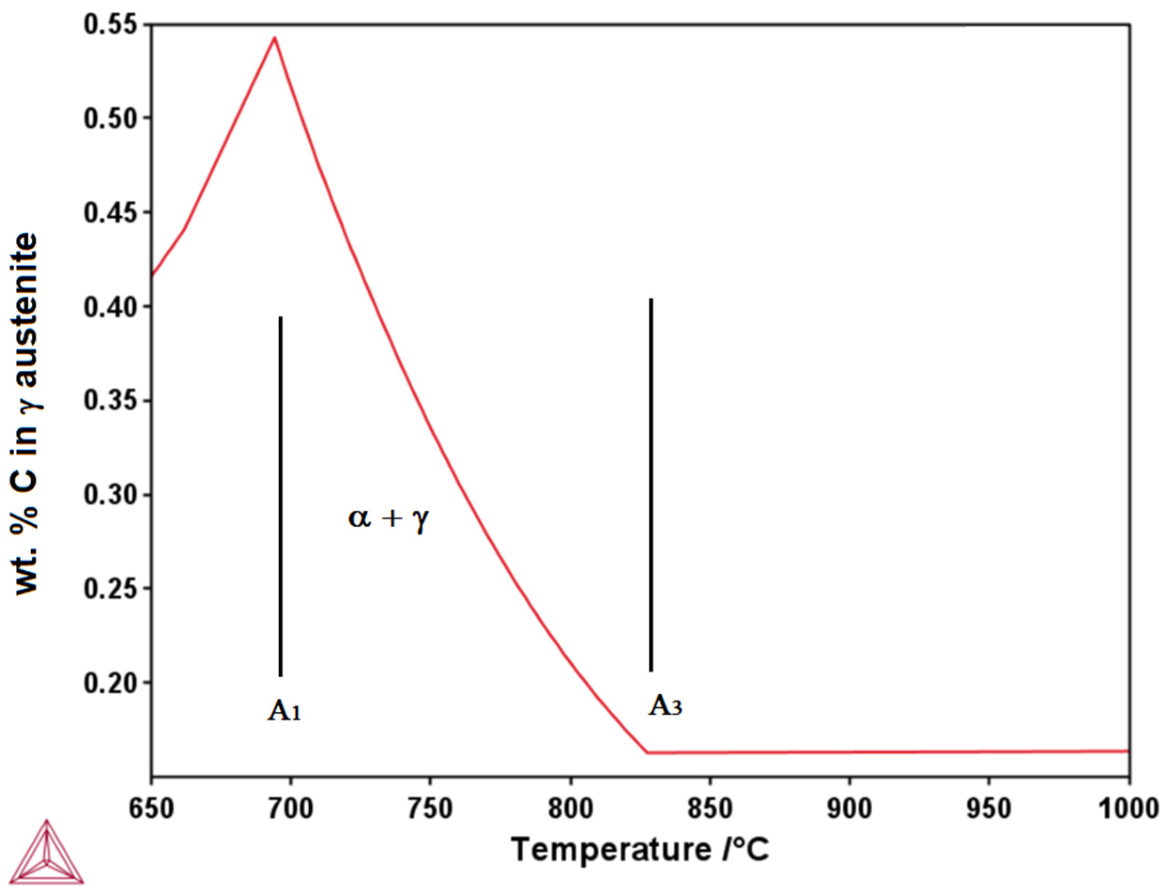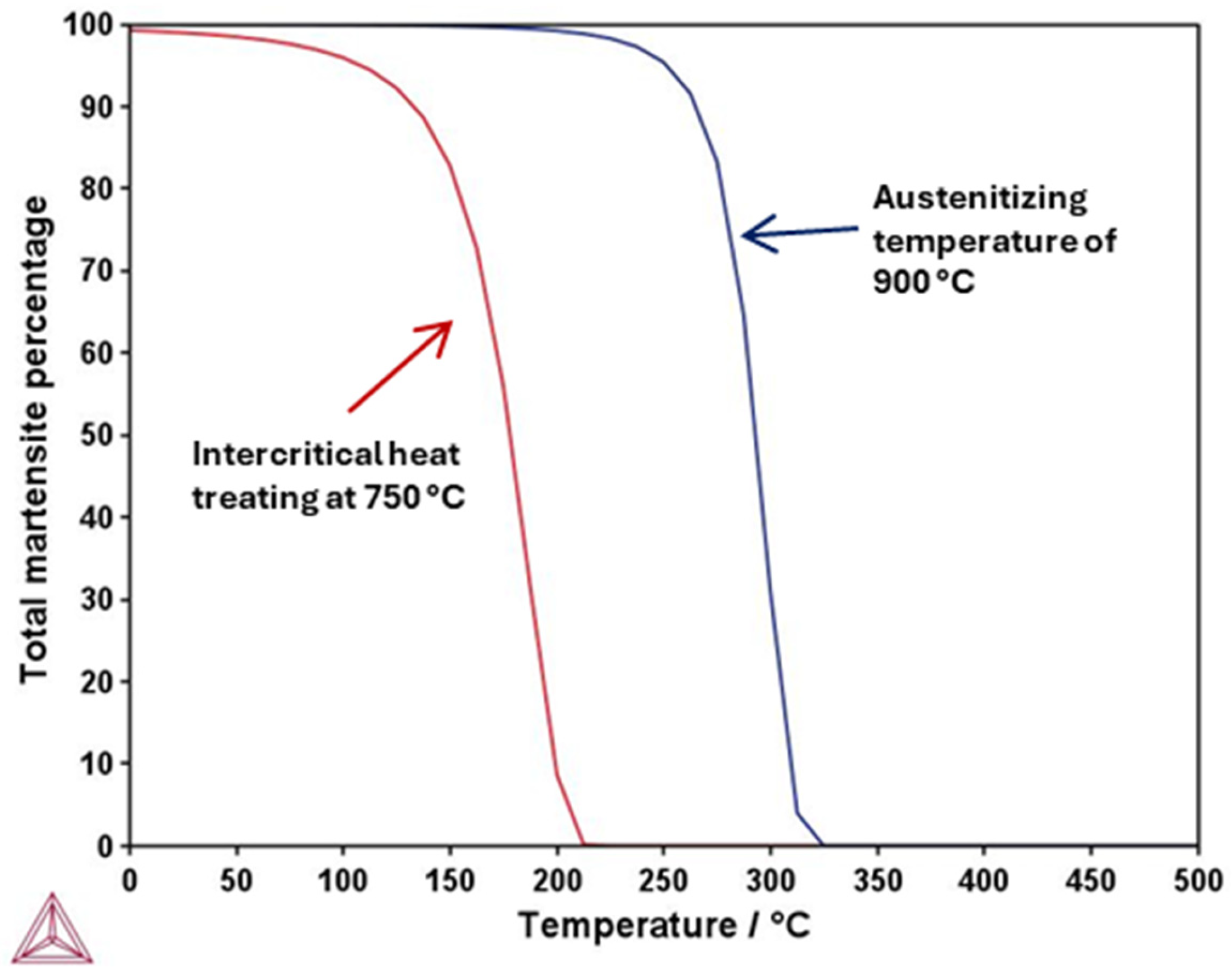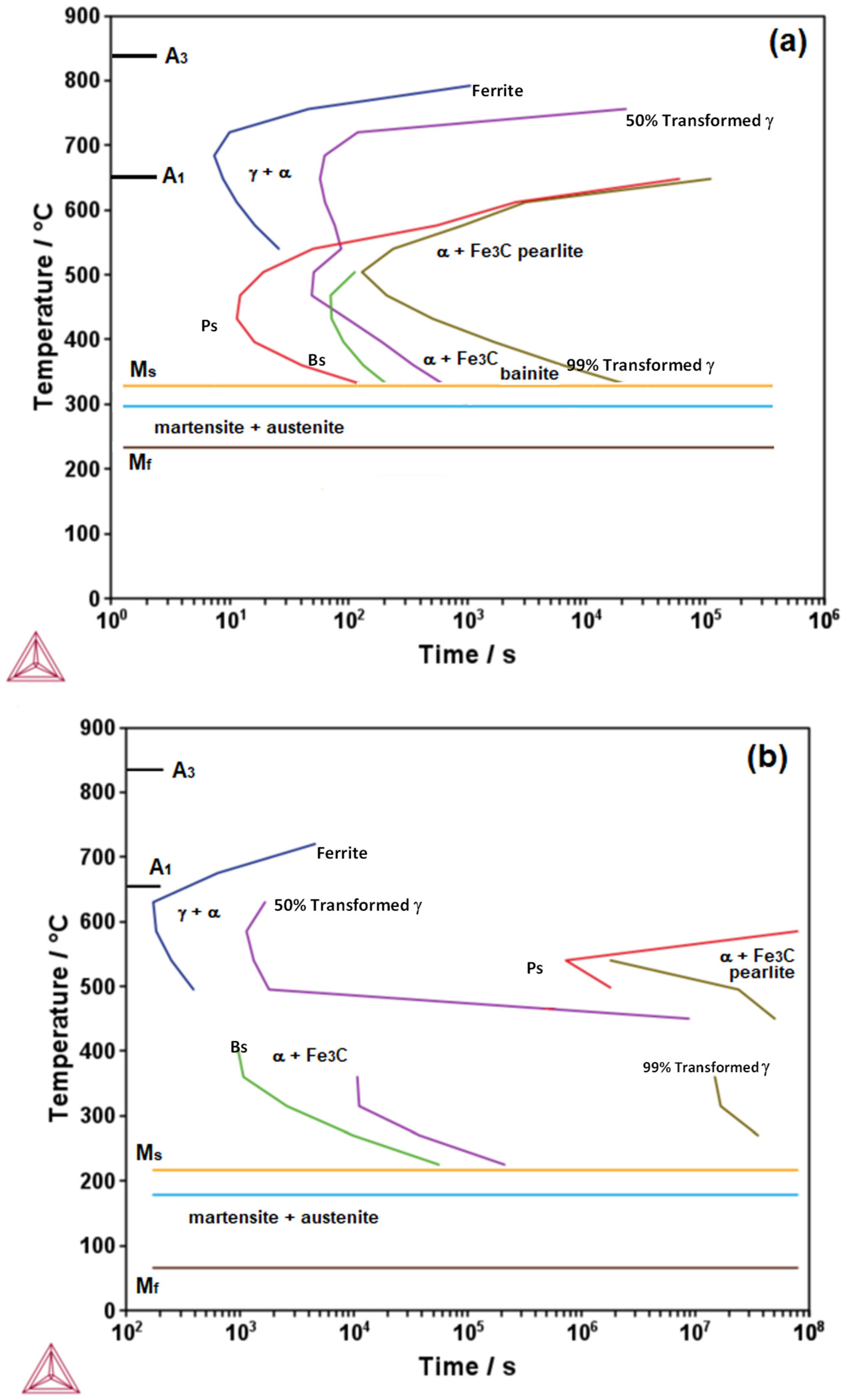 - TC-calculated microstructure evolution and mechanical properties for the heat- treated steel specimens agree well with the experimental ones. Additionally, Thermo-Calc permits the determination of TTT diagrams at intercritical temperatures, which can be used to design heat treatments and to predict the phases and microconstituents after heat treatment.