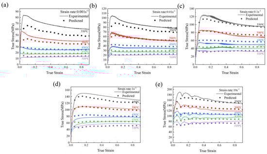 - The flow behavior of the experimental alloy during hot deformation was accurately predicted by a strain-compensated Arrhenius constitutive model. The constitutive equation at ε = 0.9 is: , which shows excellent agreement with the experimental values (R = 0.979).