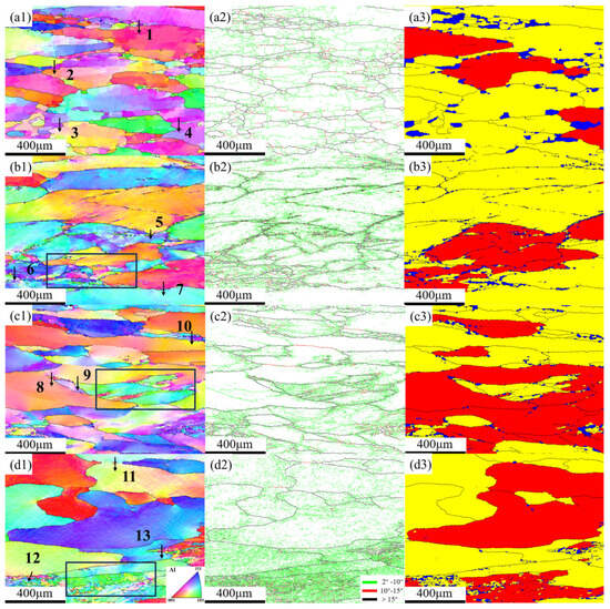 - Zhang, R.; Zhang, J.S.; Wang, W.; Tang, Y.T.; Jiang, J.; Reed, R.C.; Lin, J. Mechanistic insights and kinetics of continuous and geometric dynamic recrystallisation in hot deformed aluminium alloy. Acta Mater. 2025, 289, 120893. [Google Scholar] [CrossRef]