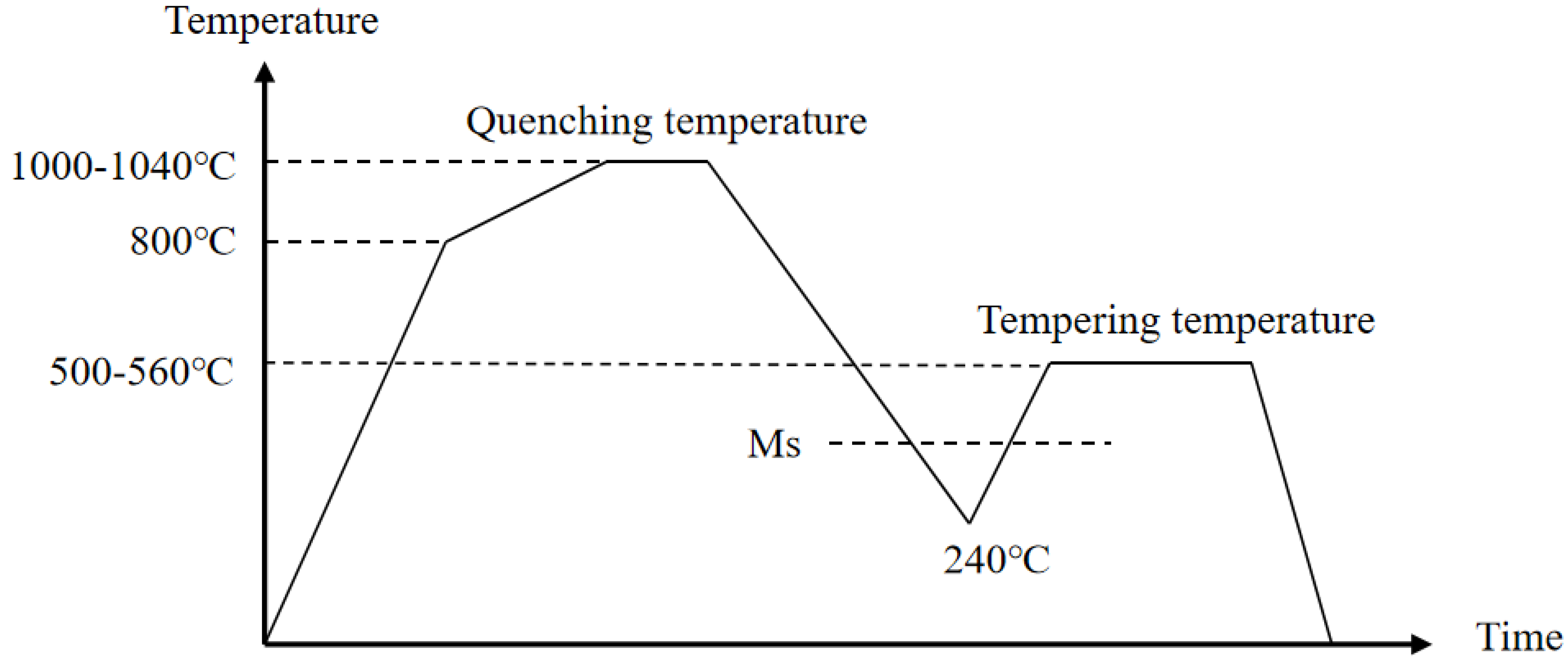 - Ning, A.; Gao, R.; Yue, S.; Guo, H.; Li, L. Effects of cooling rate on the mechanical properties and precipitation behavior of carbides in H13 steel during quenching process. Mater. Res. Express 2020, 8, 016503. [Google Scholar] [CrossRef]