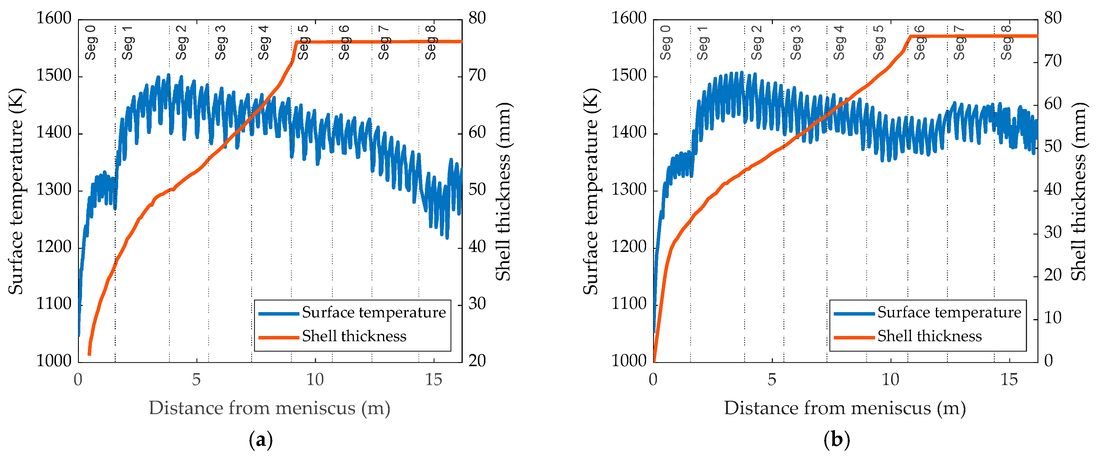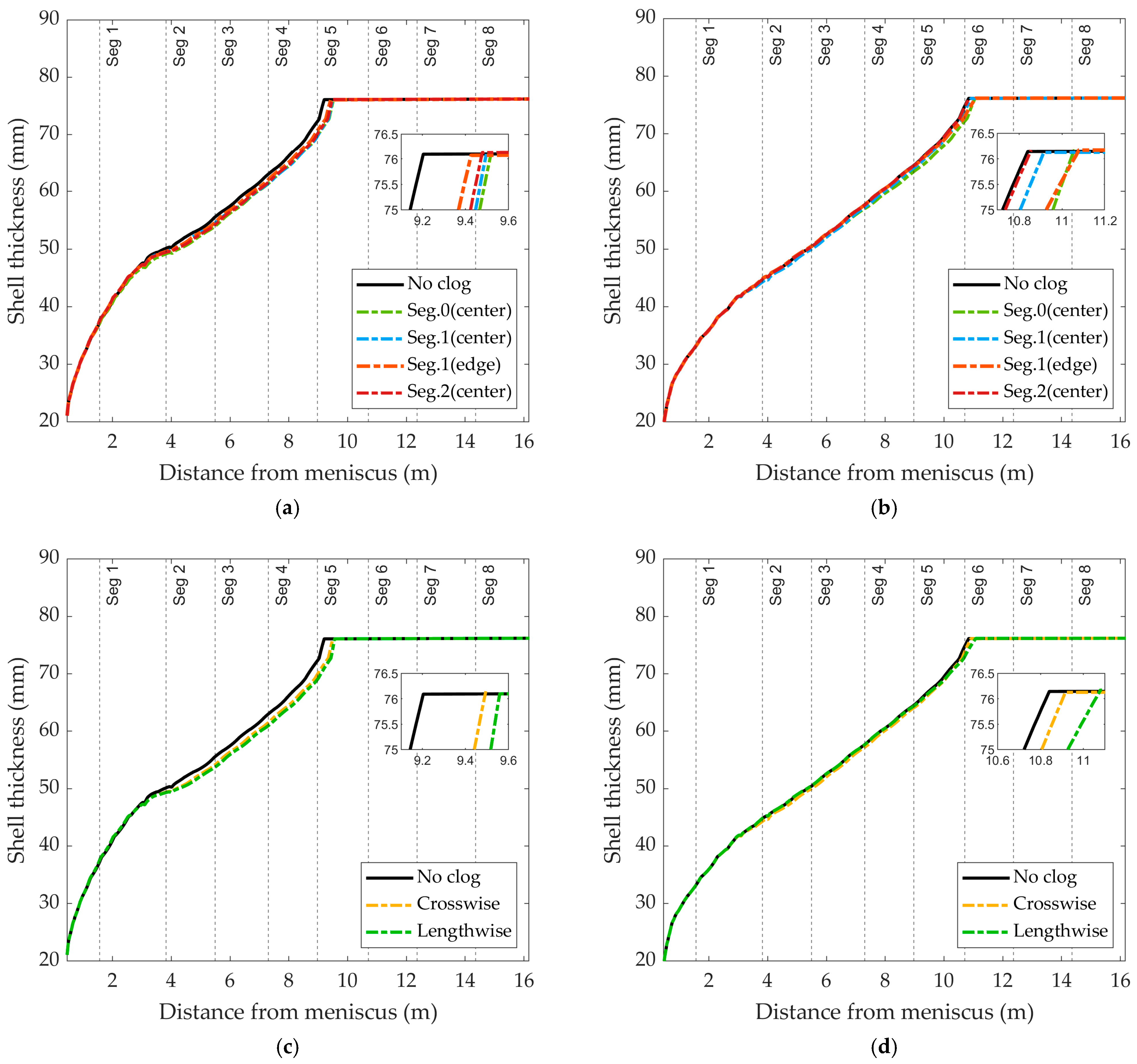 3.2.3. Effects on Shell Thickness and Metallurgical Length