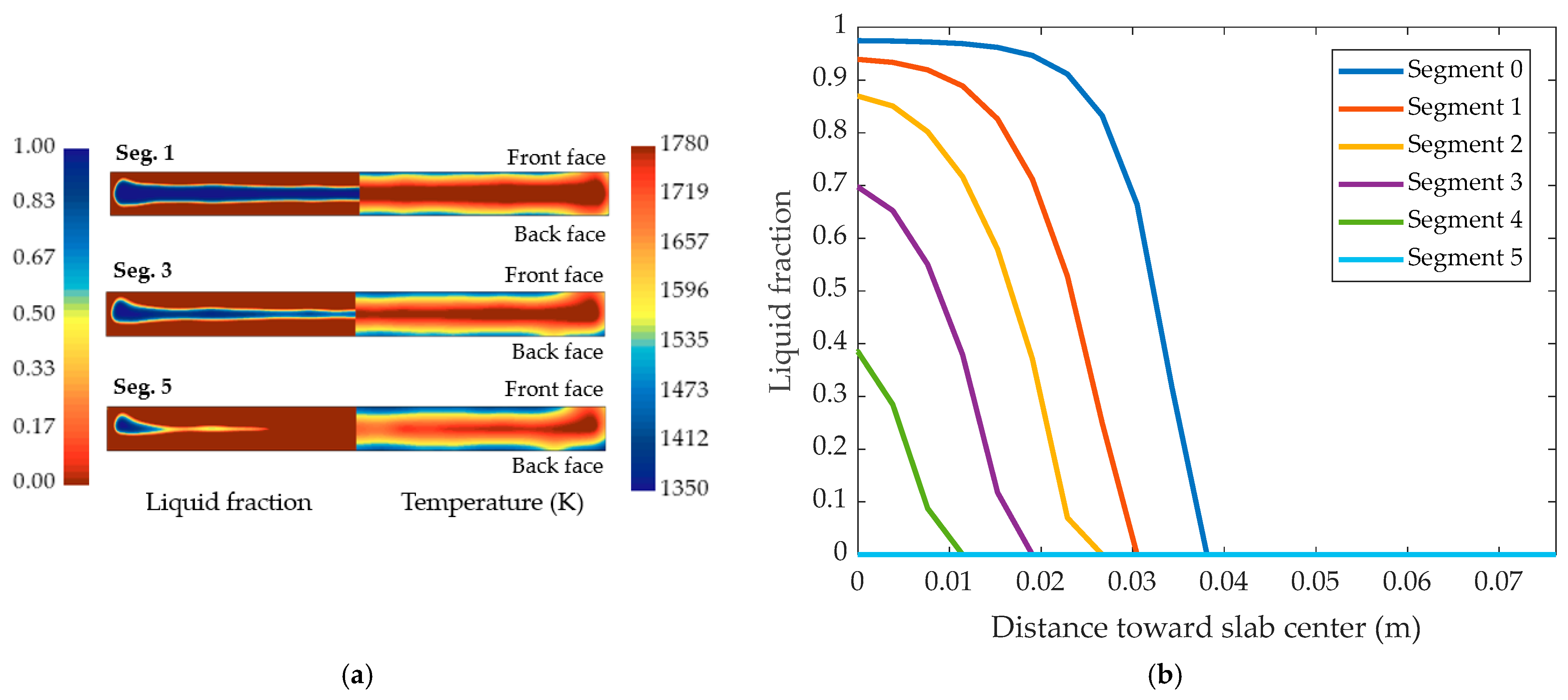 - Zhen, X.; Yu, K.; Zhang, P.; Xu, L. Study on Solidification Process Simulation of Q355NE Extra Heavy Steel Slab. Wide Heavy 2024, 30, 1–7. [Google Scholar]