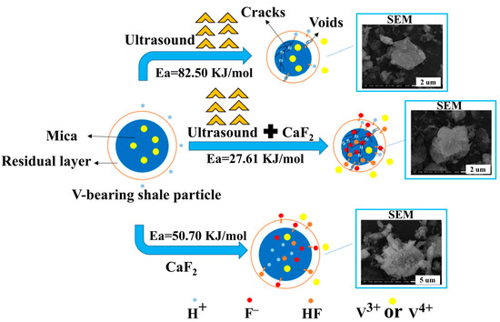 Synergetic mechanism for vanadium leaching out of V-bearing shale improved by ultrasound and CaF2. This image is reprinted from [53], with permission from Elsevier, 2016.