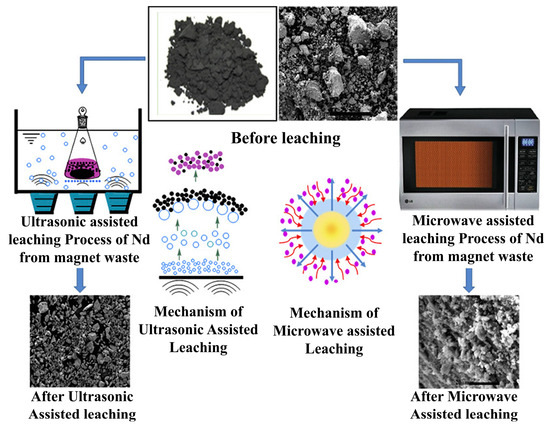 - Behera, S.; Panda, S.K.; Mandal, D.; Parhi, P. Ultrasound and Microwave assisted leaching of neodymium from waste magnet using organic solvent. Hydrometallurgy 2019, 185, 61–70. [Google Scholar] [CrossRef]