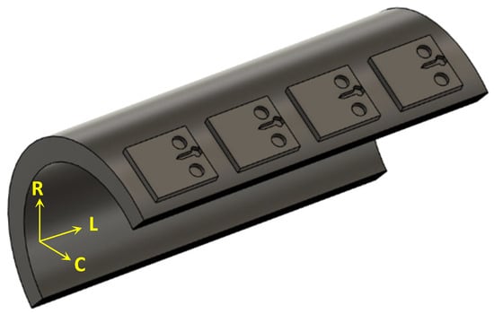 Using segmented samples, compact tension (CT) specimens were fabricated in accordance with ASTM E647–24 [27] to perform FCG experiments. The specimens were precisely machined from the longitudinal direction of the pipeline segments to align the crack propagation path with the pipe axis, as depicted in Figure 1. This orientation ensures that when a tensile load is applied in the transverse direction, crack advancement occurs parallel to the pipe’s longitudinal axis, thereby replicating service-relevant stress conditions experienced in pipeline operation.