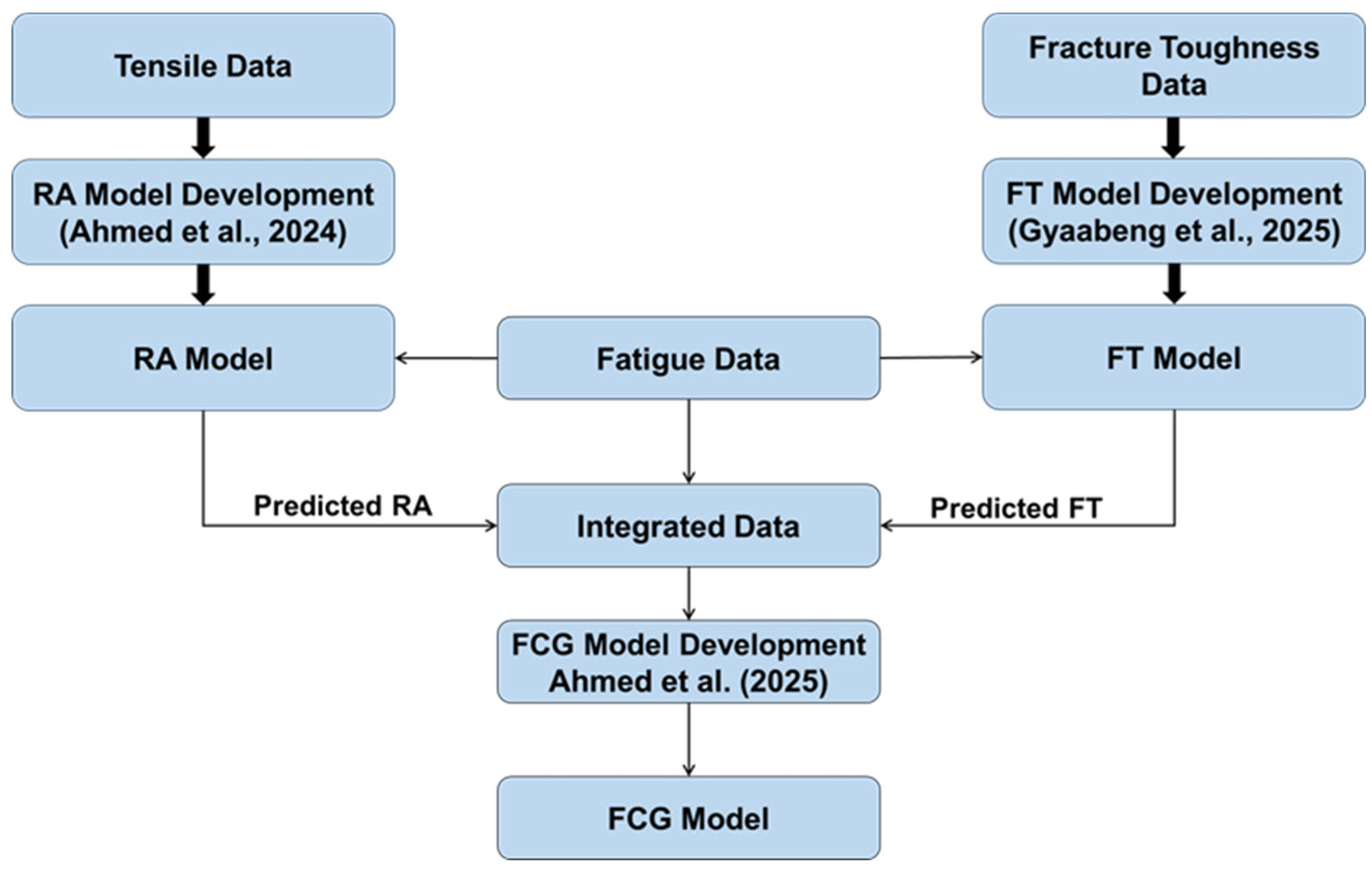 23]. These models can be trained on limited, high-quality experimental datasets and subsequently used to predict FCG behavior under a broader range of operating conditions. Recent ML studies have predicted hydrogen-induced loss of RA [