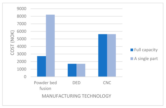 27]. Therefore, the most cost-effective technology is case-specific. For example, the company should evaluate whether a component’s complexity justifies AM adoption, considering a higher unit cost. That is, on-demand production of highly customized components in time-sensitive situations can justify a higher cost for metal AM [