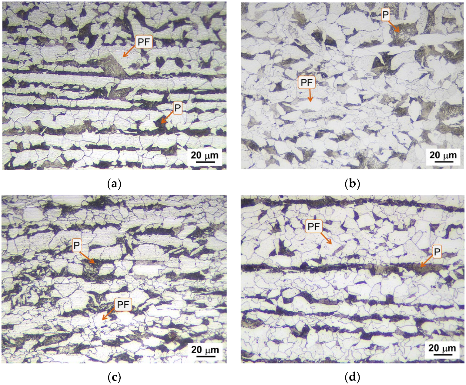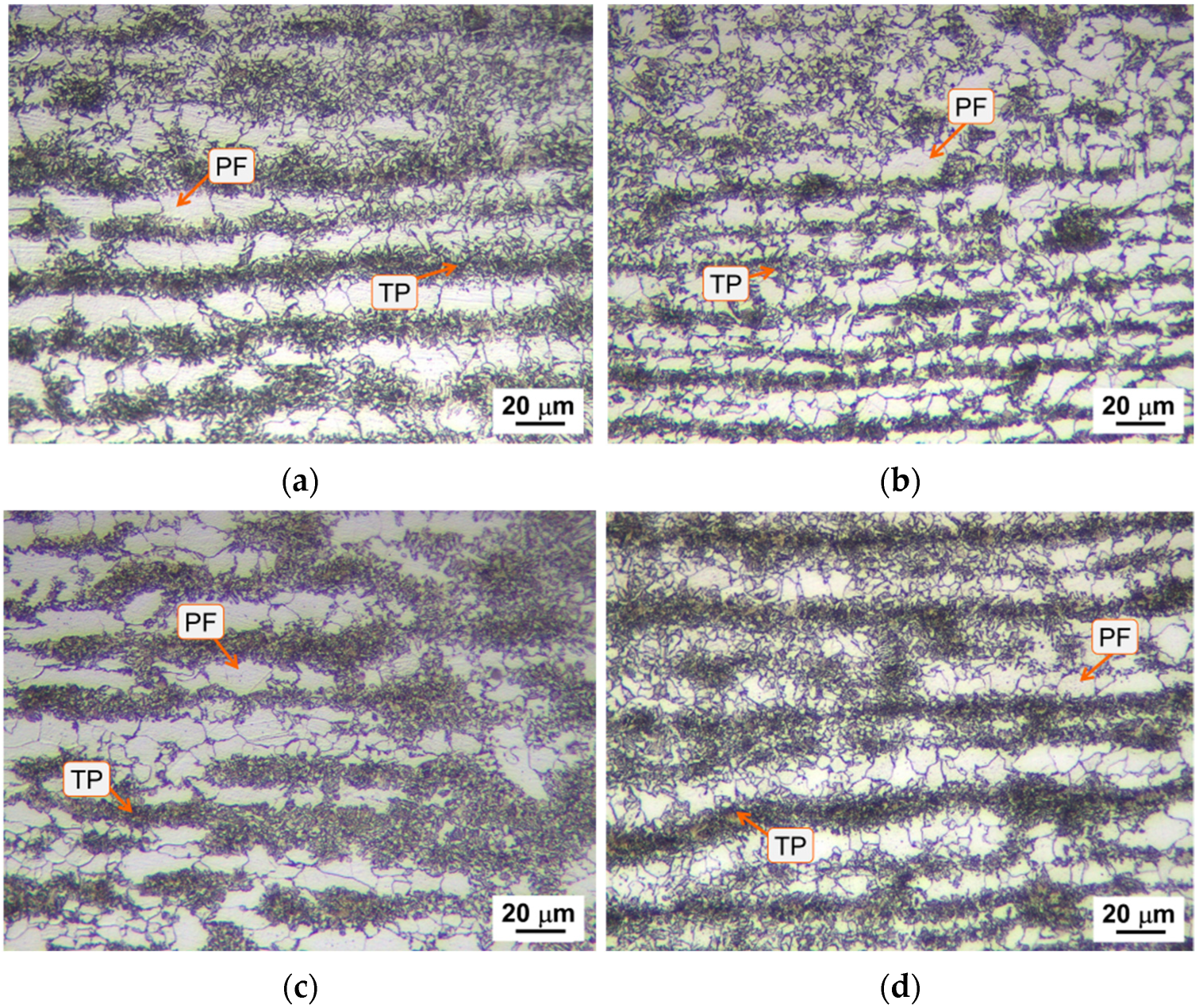 - Sinha, M.; Yadav, S.; Ghosh, S. A novel observation of Widmanstätten ferrite and pearlite by thermo-mechanical processing of interstitial-free steel. Mater. Manuf. Process. 2022, 37, 1766–1771. [Google Scholar] [CrossRef]