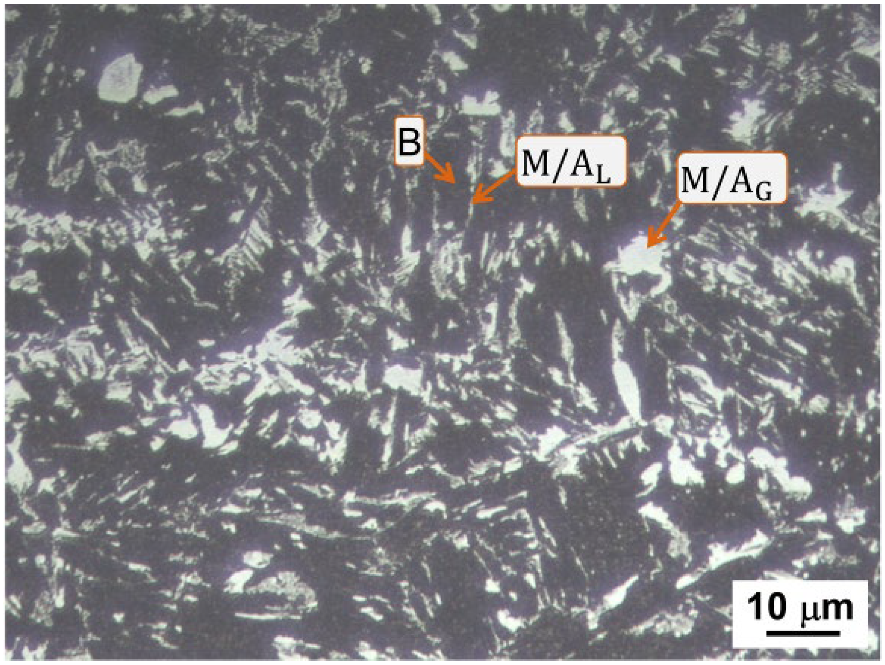 - Zhu, Z.; Kuzmikova, L.; Li, H.; Barbaro, F. Effect of Inter-Critically Reheating Temperature on Microstructure and Properties of Simulated Inter-Critically Reheated Coarse Grained Heat Affected Zone in X70 Steel. Mater. Sci. Eng. A 2014, 605, 8–13. [Google Scholar] [CrossRef]