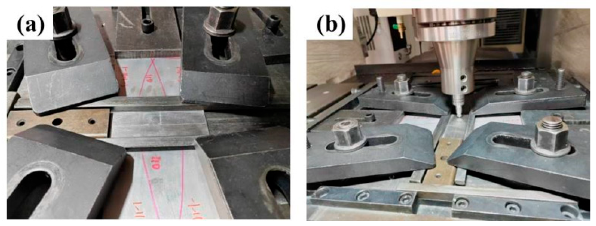 - Hou, J.; Qin, D.; Mao, Y.; Ni, Y.; Xiao, X.; Fu, L. Research on high speed friction stir welding process of magnesium alloys. Precis. Form. Eng. 2019, 11, 127–134. [Google Scholar]