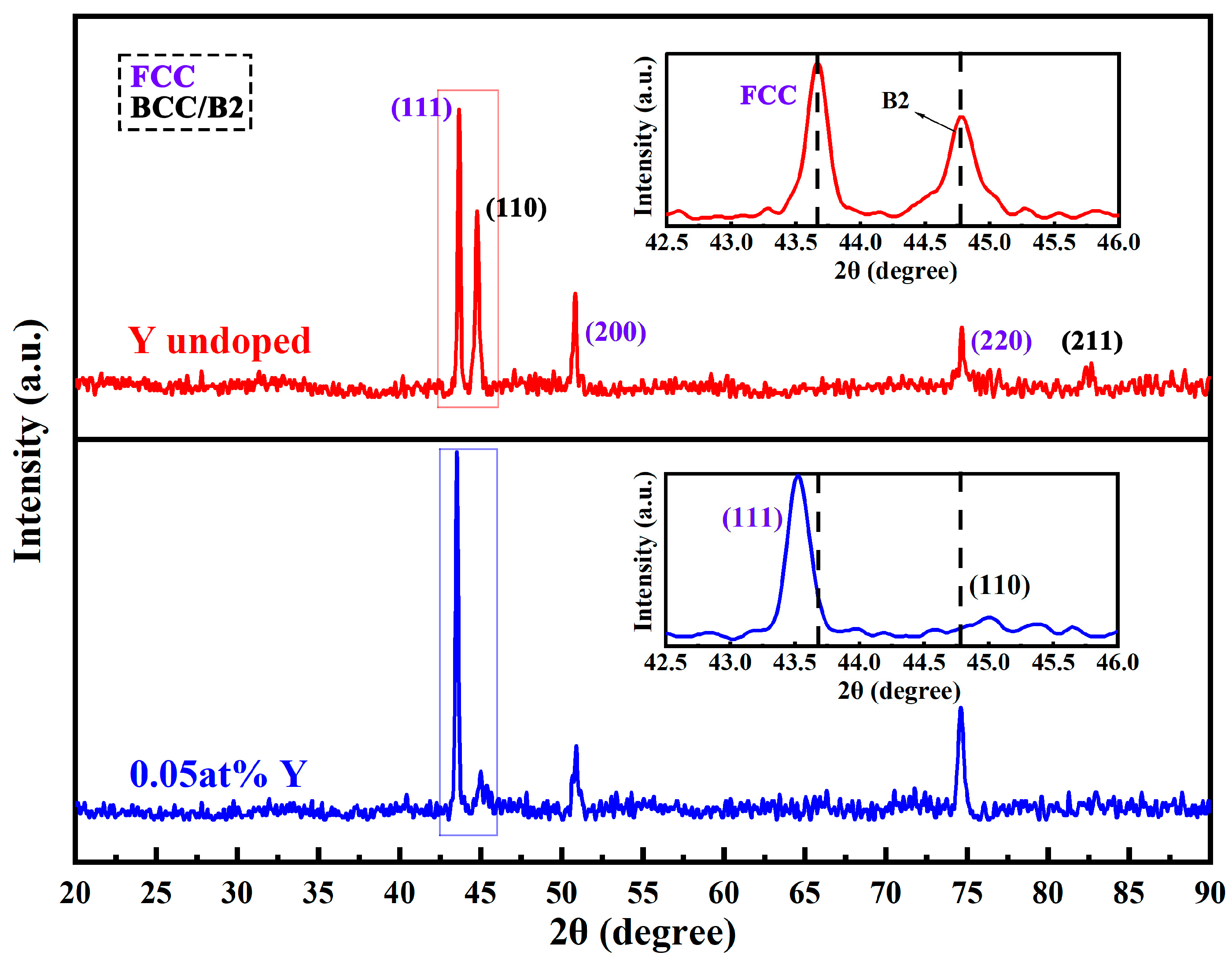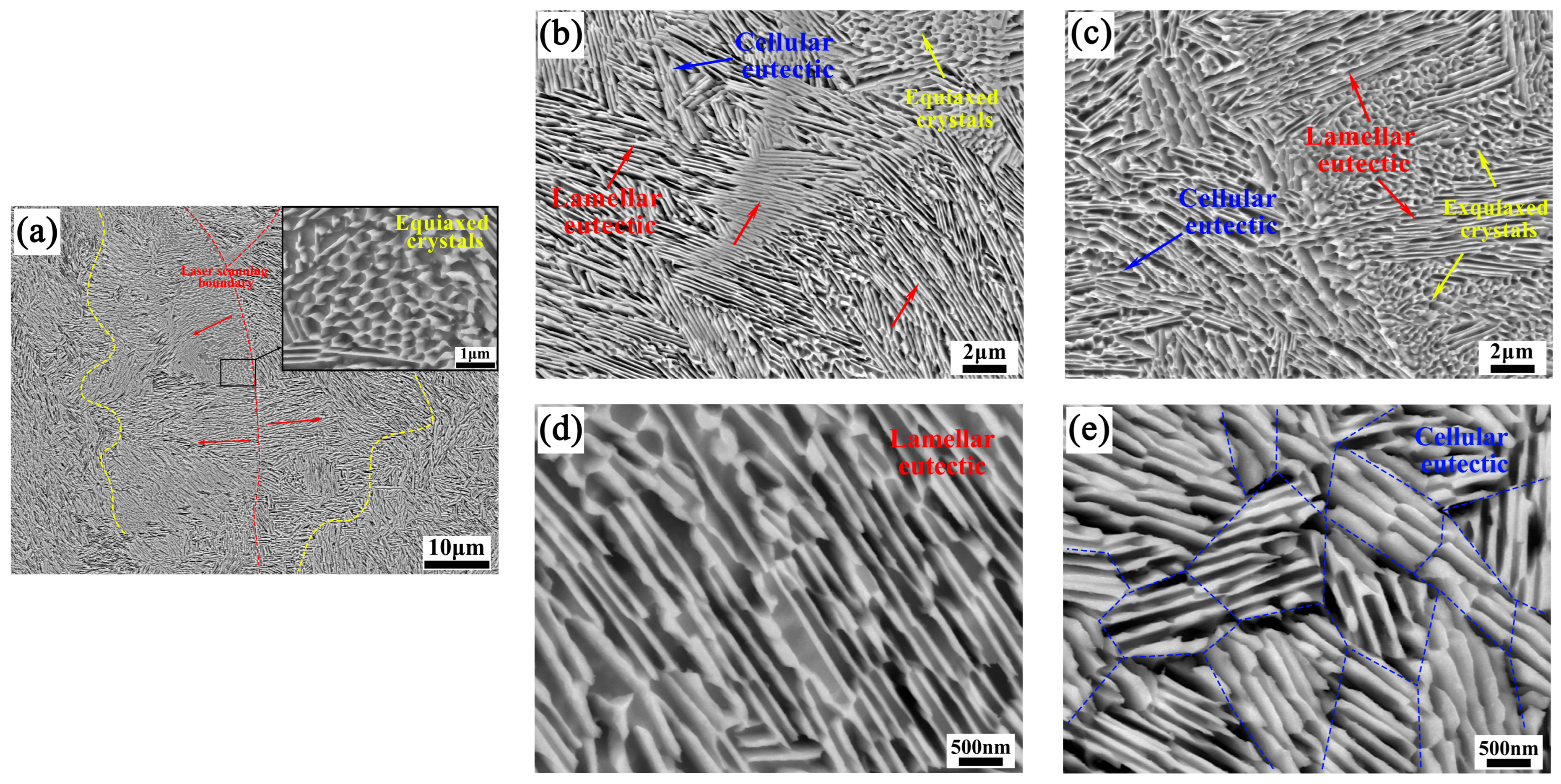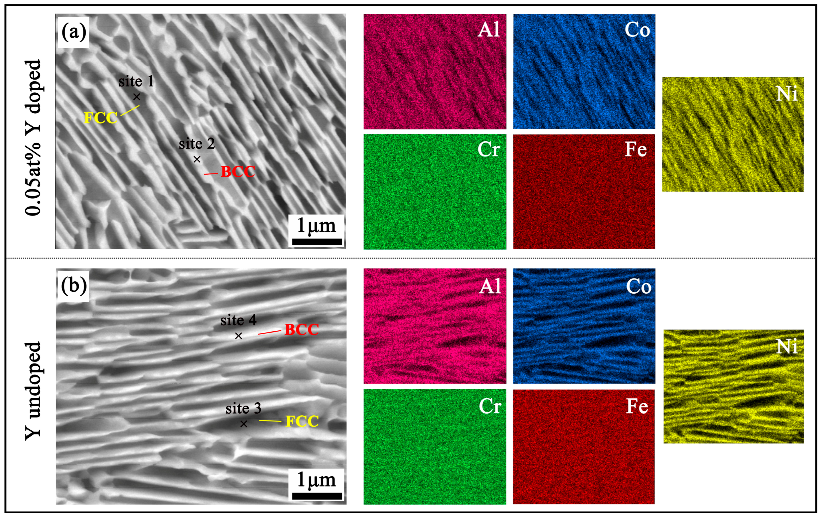 - Y addition significantly refines the eutectic microstructure and increases the volume fraction of the BCC phase, while simultaneously suppressing the long-range ordering of the B2 structure due to lattice distortion and solute redistribution effects.