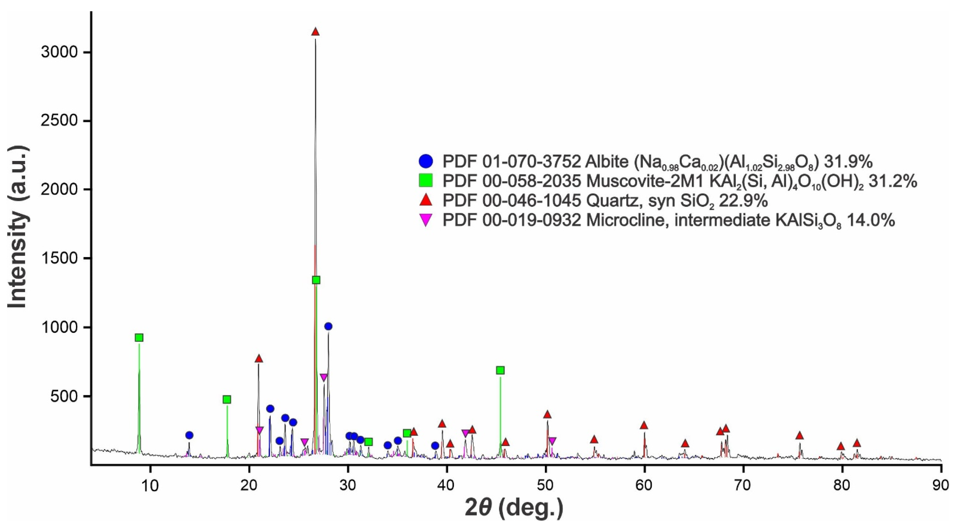 Figure 1), the phase composition is dominated by aluminosilicates: albite (Na
