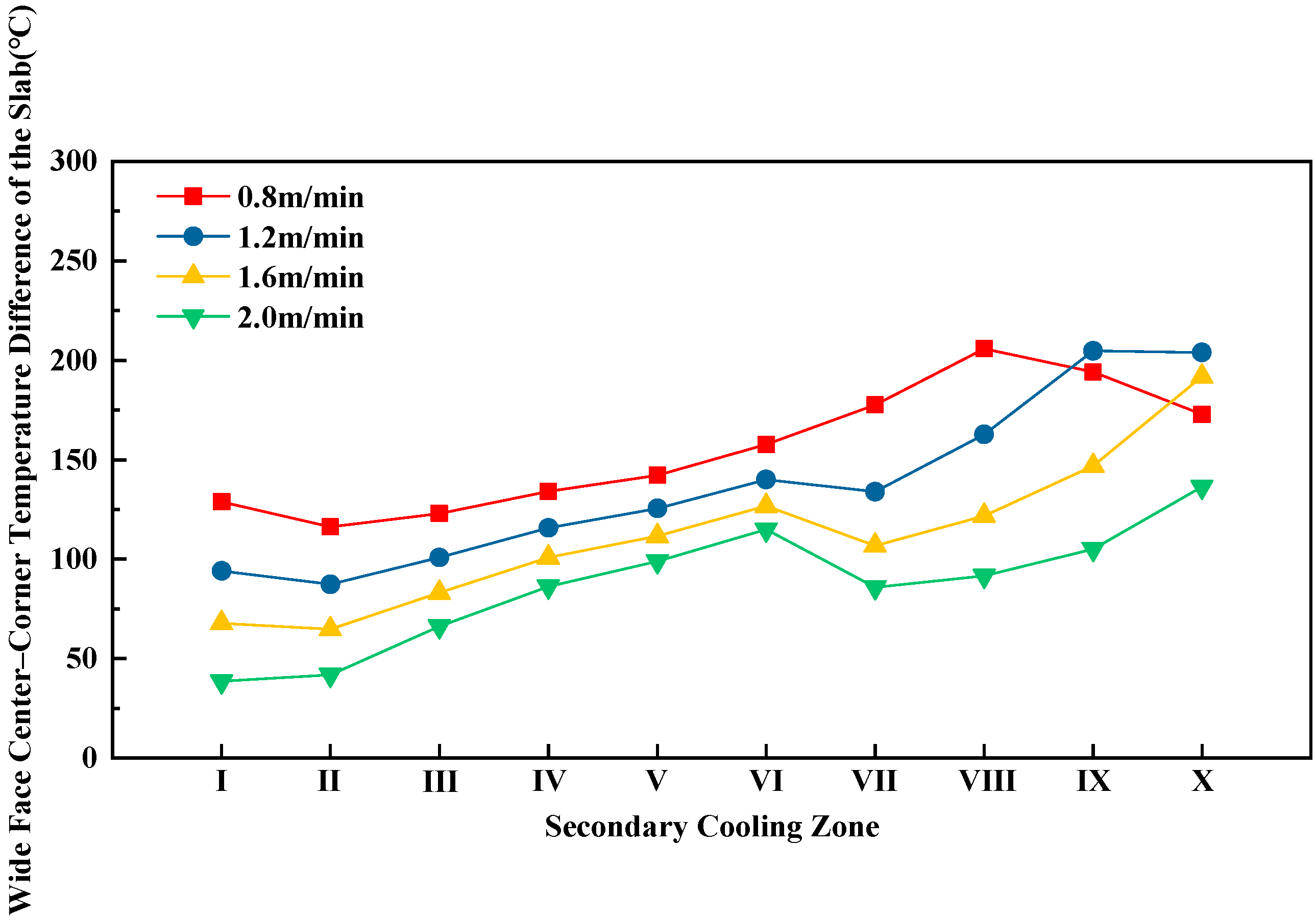 Table 11. The temperature differences between different speeds are calculated using the slab surface temperature at 1.2 m/min as the reference.