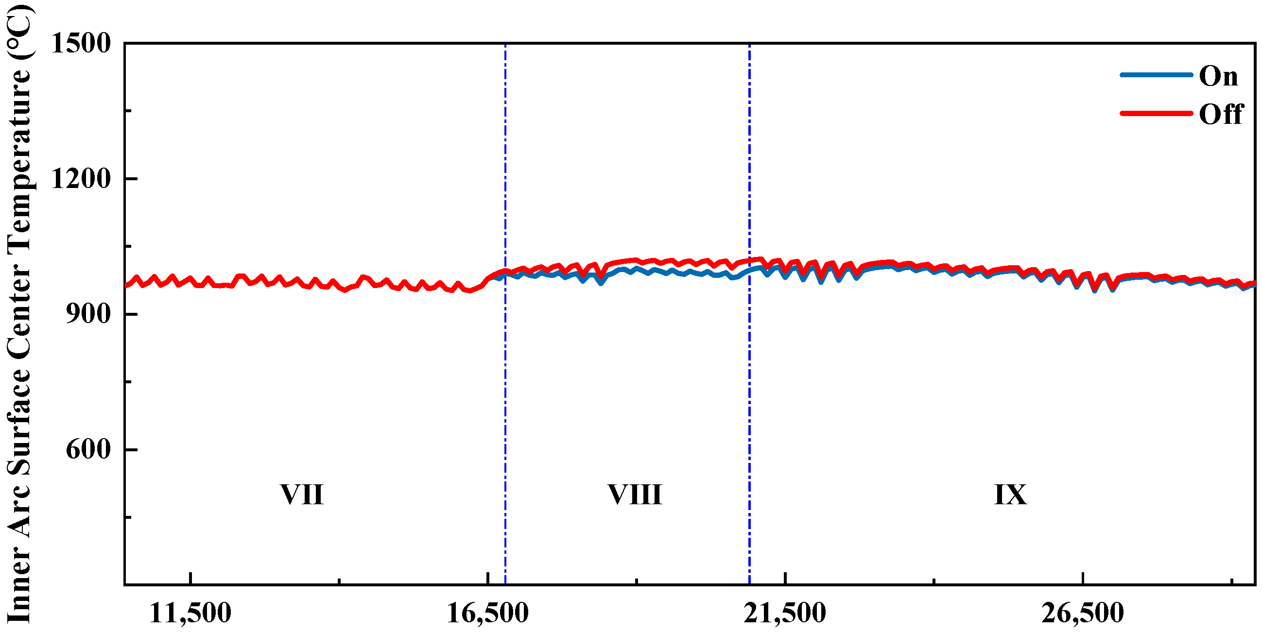 The variation curves of the inner- and outer-arc surface center temperatures are shown in