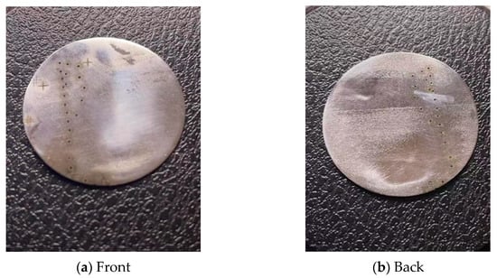 Following the completion of the experimental setup design and preliminary preparations, comparative experimental plans were developed focusing on two key parameters: laser scanning cycles and peak power. Experiments were carried out under both backwater-assisted and non-backwater-assisted conditions. Within each experimental group, while keeping other factors constant, a single-factor method was employed to vary the scanning cycles and peak power independently, in order to investigate the specific effects of different parameter combinations on drilling quality, as summarized in Table 2. Before the experiment, preliminary processing of 0.3 mm thick 304 stainless steel was performed using a picosecond laser. It was found that under conditions where the power exceeded 21 W and the number of processing passes was greater than 15, the workpiece could be successfully penetrated with satisfactory results.