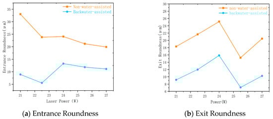 Comparison of Microhole Roundness Between Backwater Assistance and Non-Water Assistance at Different Power Levels.