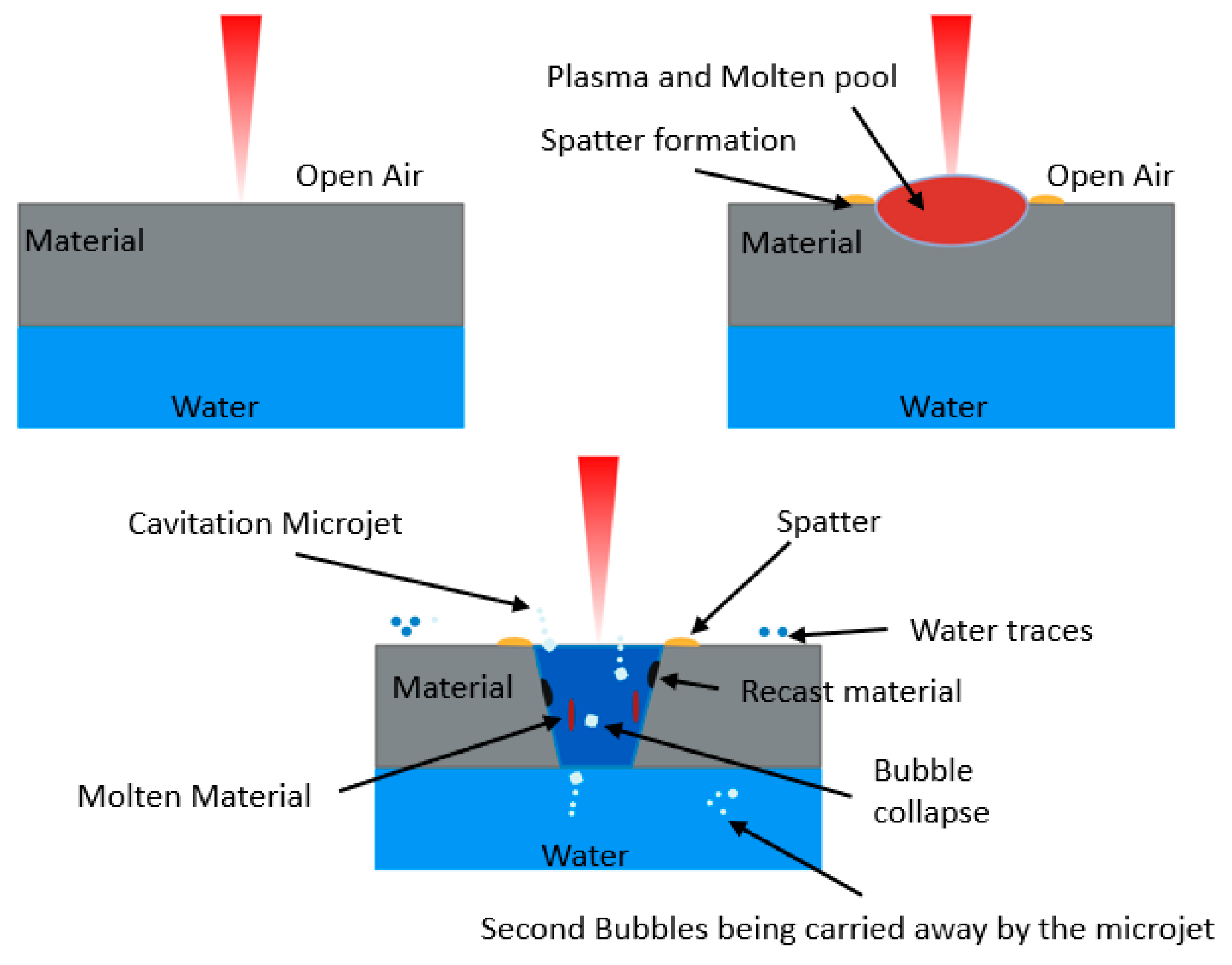 2.1. Principle of Backwater-Assisted Laser Drilling