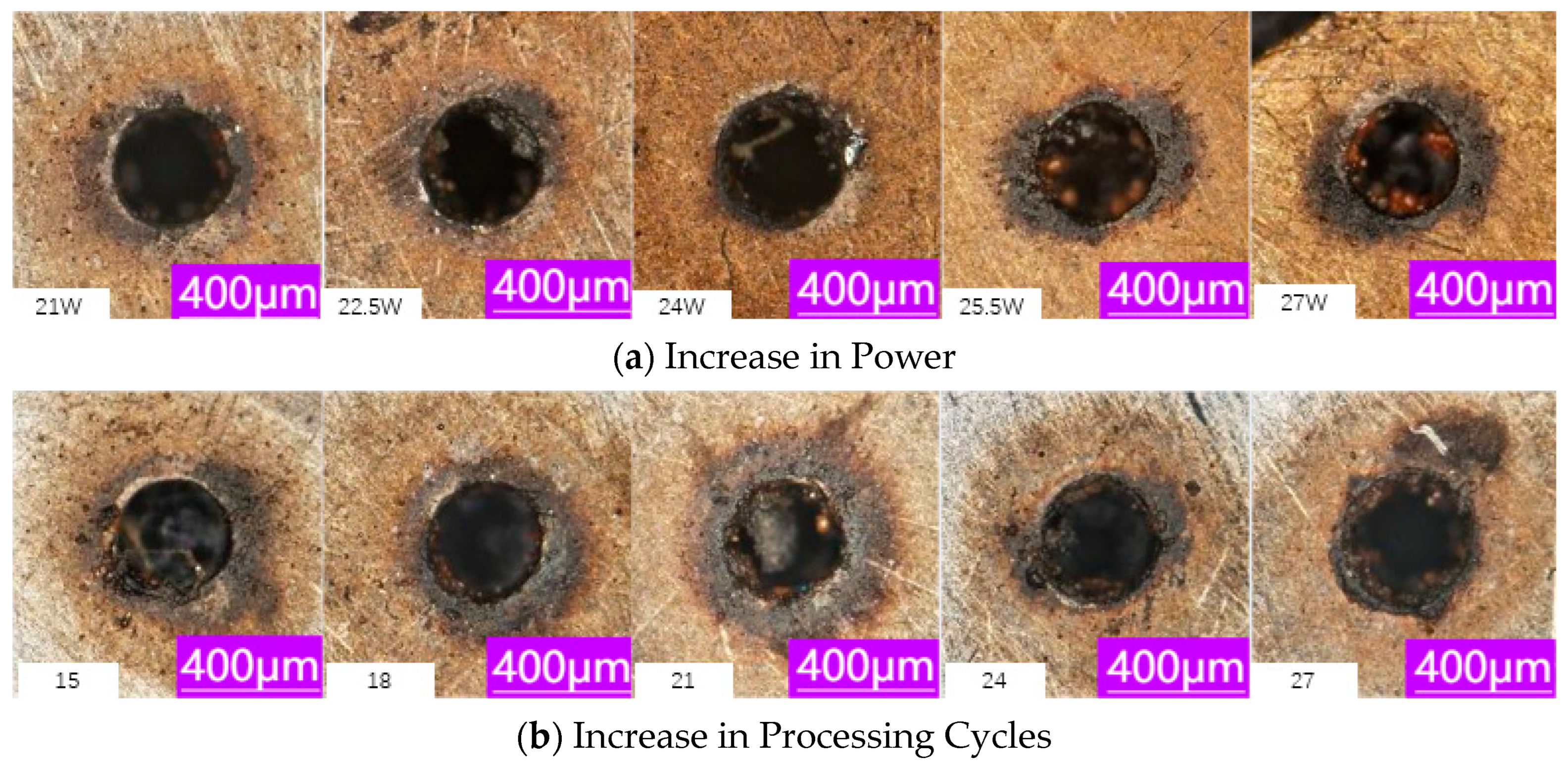 3. Comparison and Analysis of Laser Drilling Results in Two Processing Environments